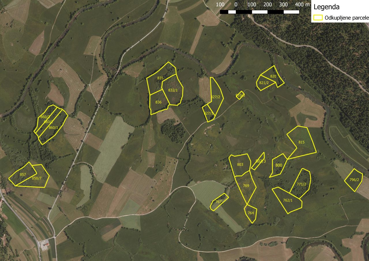 Občina Postojna je uspešno izpeljala postopke za odkup 21,65 hektarjev zemljišč, zadnji fazi odkupa pa je še 3,45 ha. Na vseh 25,1 odkupljenih hektarjih bo Občina Postojna zagotovila izvajanje prilagojenih kmetijskih praks (brez gnojenja in s pozno košnjo enkrat letno), s čimer bo izboljšala stanje izbranih življenjskih prostorov kot so travniki s prevladujočo modro stožko in bazična nizka barja.